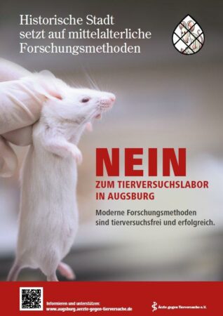 In Augsburg gab es bislang keine Tierversuche, sondern klinische Forschung auf hohem Niveau. Nun will die Stadt mit 35 Millionen Euro aus Steuermitteln eine „Versuchstier“-haltung für 23.400 Mäuse sowie Tierversuchslabore am neuen Medizin-Campus der Universitätsklinik Augsburg bauen und 2030 in Betrieb nehmen. In einem „Interims-Labor“ im Sigma Park Augsburg sollen Tierversuche an Ratten und Mäusen bereits Mitte 2023 starten. Laut Recherchen von Ärzte gegen Tierversuche wurden bereits mindestens 4 Professuren mit Tierexperimentatoren besetzt. Der Verein kämpft seit Bekanntwerden der Pläne Anfang 2020 dagegen, dass Augsburg zur Tierversuchsstadt wird. Die Steuermittel sollen stattdessen für zukunftsweisende High-Tech-Forschung ohne Tierversuche ausgegeben werden. Wie innovativ solche Forschungen bereits sind, belegt ÄgT selbst: durch seine vor zwei Jahren gestartete NAT-Database, einer weltweit einzigartigen Datenbank für tierversuchsfreie Forschungsmethoden mit schon fast 1.500 Einträgen.