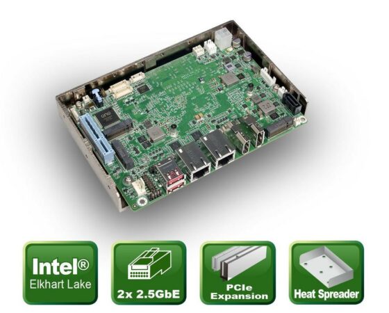 Das WAFER-EHL ist ein 3,5“ Mainboard welches über eine Kühlschale verfügt. Diese ermöglicht eine sehr einfache Installation des Boards sowie eine unkomplizierte Wärmeabfuhr der verbauten Komponenten, was für Automatenbauer oder Maschinenbauer von Vorteil ist. Das WAFER-EHL 3,5“ Embedded Board ist mit einem Elkhart Lake Celeron® J6412 Prozessor ausgestattet, der über vier Prozessorkerne verfügt. Die Elkhart Lake Generation wurde für IoT-Edge-Geräte entwickelt und bringt unter Anderem Funktionen im Bereich IoT, Echtzeitleistungen und funktionelle Sicherheit mit. Außerdem wurde die Leistung verglichen mit der vorherigen Generation um bis zu 1,7-fach in der Einzel-Thread-Leistung und um bis zu 1,5-fach in der Multi-Thread-Leistung erhöht. Dank Intel® Gaussian & Neural Accelerator (GNA) können bei niedrigem Stromverbrauch audiobasierte neurale Netzwerke ausgeführt werden und so die Arbeitslast der CPU reduziert werden. Die Burst-Frequenz der Celeron® CPU beträgt 2,60GHz. Auf dem WAFER-EHL 3,5“ Board ist standardmäßig ein 8GB DDR4 RAM Modul mit 3200 MHz fest verbaut. Für die Grafik Ausgabe ist das Board mit einem Display Port mit maximaler Auflösung von 4096×2160 Pixeln sowie einem HDMI Port ausgestattet. Über den IEI IDPM 3040 Slot kann ein eDP, LVDS oder VGA Modul ergänzt werden. Besonders hervorzuheben ist der PCIe x4 Slot, der eine wahre Besonderheit auf dem 3,5“ Board darstellt und eine Erweiterung durch Riser Cards möglich macht. Als Netzwerk ICs wurden zwei Intel i225V verwendet, die jeweils eine Geschwindigkeit von bis zu 2.5GbE ermöglichen. Intern verfügt das Board über zwei RS-232/422/485, vier USB2.0 Schnittstellen sowie einen 12bit digitalen Ein- und Ausgang, extern über zwei USB3.2 Ports. Für Erweiterungen stehen ein M.2 2230 mit A-Key und ein M.2 3042/2280 mit B-Key Steckplatz bereit. Das Board arbeitet mit 12 Volt Gleichspannung in einem Temperaturbereich von 0 °C bis 60 °C. Auf Wunsch liefert ICP das Board mit passendem industriellen Arbeitsspeicher und Solid State Speicher.