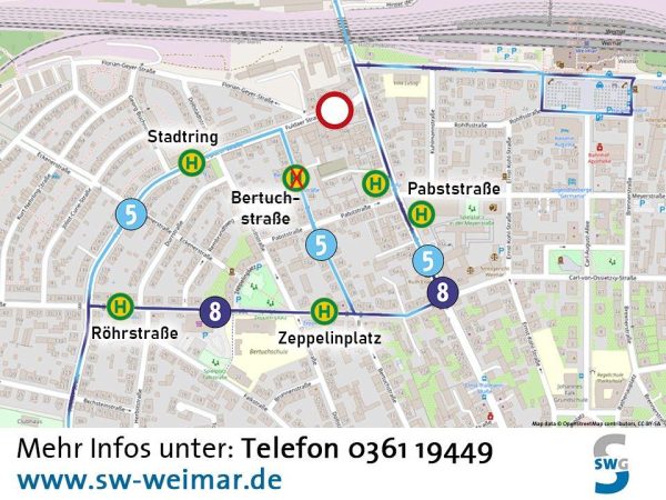 Aktuelle Informationen erhalten Fahrgäste zusätzlich durch örtliche Bekanntmachungen an den Haltestellen, im Kundenzentrum der Stadtwirtschaft Weimar am Goetheplatz sowie im Internet unter www.sw-weimar.de