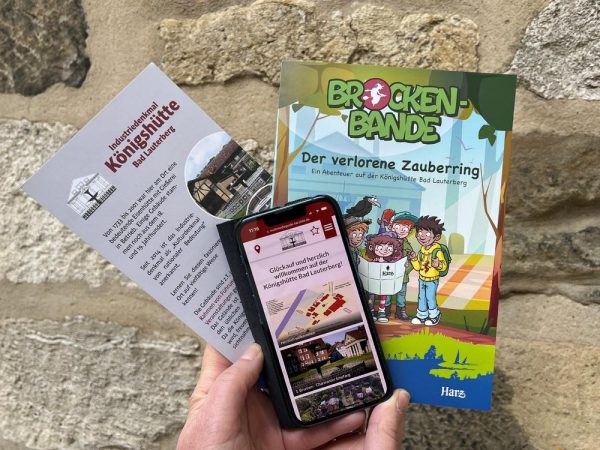 Ab sofort ist die Brockenbande auf der Königshütte Bad Lauterberg im Auftrag der Amerikanerin Susie Salas unterwegs. Sie sollen sich auf die Suche nach dem verlorenen Zauberring begeben. Das Storytelling des neuen Rätselheftes für Kinder von 8-12 Jahren basiert auf einer wahren Geschichte, denn Frau Salas besuchte 2022 die Königshütte erstmals nach über 50 Jahren wieder. Damals wohnten ihre Großeltern auf der Hütte und sie erinnerte sich nicht nur an zahlreiche Besuche, sondern auch an den Verlust ihres Rings, der bis heute nicht gefunden wurde! Ein idealer Auftrag für die Brockenbande, das sind Luke, Henry, Hanna und Emma, die natürlich helfen wollen. Mit der Rätseltour im handlichen A5 Format können kleine Gäste die vier Freunde begleiten und auf Entdeckungsreise auf dem Hüttengelände gehen. An neun Stationen lösen die Kinder verschiedene Rätsel, ohne das ein Betreten der Gebäude notwendig ist. Bei der Tour erfahren die Rätselfans gemeinsam mit der Brockenbande allerhand Wissenswertes über die ehemalige Eisenhütte als ein spannendes und geheimnisvolles Industriedenkmal mitten in Bad Lauterberg. Am Ende finden die Kinder einen „Ring“ – ist es der echte? Die Auflösung bleibt den kleinen Spurensuchern vorbehalten.