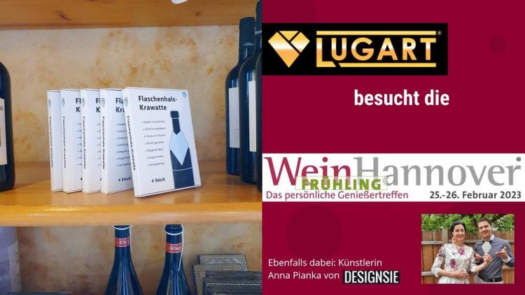Mit diesem Produkt können Sie den Wein dekorieren und Tropfen beim Einschenken verhindern. LUGART freut sich mit Gründer Arthur Schuchmilski sowie mit der Künstlerin Anna Pianka von Designsie darauf, Aussteller und Besucher auf der "WeinHannover" Messe zu treffen und sich rund um Weinthemen auszutauschen. Sprechen Sie LUGART gerne an und erfahren Sie mehr über die Vorteile der BottleTies.