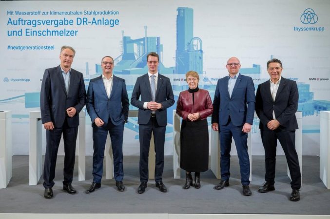 - thyssenkrupp Steel beauftragt SMS mit dem Engineering, der Lieferung und dem Bau einer wasserstoffbetriebenen Direktreduktionsanlage, zweier innovativer Einschmelzer und zugehöriger Nebenaggregate am Standort Duisburg.