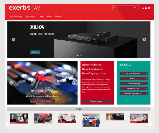 Nach monatelanger inhaltlicher, technischer und vor allem optischer Überarbeitung launcht Exertis AV die neue Website – die sich modern und informativ gibt und auf dem aktuellen Stand der Technik präsentiert. Die Neugestaltung der Homepage und des Webshops ist ein großer Schritt nach vorne, um Händlern, Planern und Architekten sowie Herstellern und Bewerbern einen noch besseren Service und ein noch besseres Navigationserlebnis zu bieten. Der neue Webauftritt gibt Kunden einen vollständigen Überblick über das gesamte Produktportfolio von Audio- und Video-Lösungen und ermöglicht es, die richtige Lösungen zu finden. Des Weiteren glänzt der Webauftritt durch sein responsives Design und ist nun auch auf Tablets und Smartphones benutzerfreundlich.