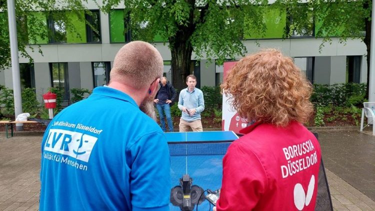 Borussia Düsseldorf hat sich neben dem Profi-Tischtennis bereits seit vielen Jahren unterschiedlichsten sozialen Projekten verschrieben und verbindet erfolgreichen Spitzensport mit sozialem Engagement wie kein anderer Verein. „Die Kooperation mit dem LVR-Klinikum ist für uns Neuland und Herzensangelegenheit zugleich, da wir nun erstmals Menschen mit psychischen Erkrankungen ansprechen“, erklärt Andreas Preuß, Manager der Borussia. „Tischtennis als einfache und kommunikative Sportart eignet sich hier optimal und unsere verschiedenen niedrigschwelligen Bewegungsangebote werden zahlreich und begeistert angenommen“, erklärte Preuß weiter. „Der heutige Tischtennis-Tag im LVR-Klinikum war auch für uns ein Höhepunkt mit einem wunderbaren Tischtennisfest! Andreas Preuß bedankte sich abschließend auch bei der „Aktion Mensch“ für die großzügige Unterstützung des Projekts.