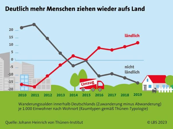 Die Menschen in Deutschland haben die Lebensqualität des ländlichen Raums für sich entdeckt – und die Corona-Pandemie hat diesen Trend weiter verstärkt. Immer mehr wollen gerne auf dem Land wohnen. Der aktuelle Gedanke aus Städteplanung und Politik, dass wir alle bescheidener und auf weniger Fläche leben sollten, passt nicht zu diesen Wohnträumen. Das Statistische Bundesamt bestätigt, dass die durchschnittliche Wohnfläche pro Kopf zwischen 2011 und 2021 sogar um 3,5 Prozent zugenommen hat – auf heute 47,7 Quadratmeter – und auch weniger Personen in einer Wohnung leben. Gesucht und gewünscht sind nicht nur Grundstücke für einen Neubau, sondern durchaus auch gebrauchte Häuser. Bei der in der Regel nötigen Sanierung wird dann gerne selber mit Hand angelegt. So kann nachhaltiges und klimafreundliches Wohnen auch auf dem Land in die Realität umgesetzt werden.