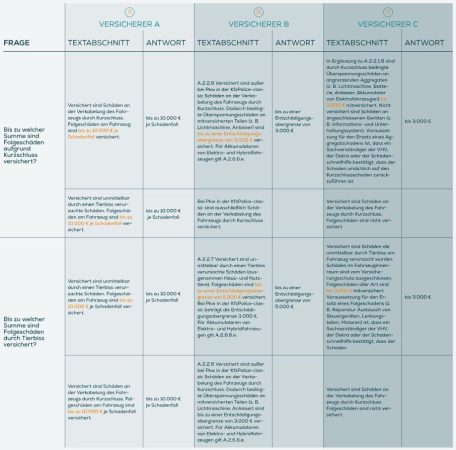 Bis dato blieb Versicherern nichts anderes übrig, als alle Bedingungen manuell zu durchsuchen und relevante Abschnitte mühselig in eine Übersicht zu kopieren. Auch gängige Stichwortsuchen stoßen an ihre Grenzen.