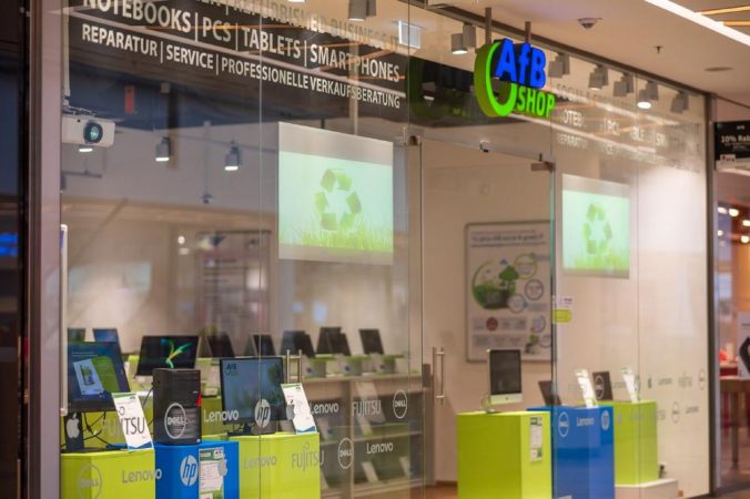 AfB übernimmt nicht mehr benötigte IT- und Mobilgeräte, löscht die darauf befindlichen Daten, rüstet sie auf, bespielt sie mit neuer Software und verkauft sie mit mindestens 12 Monaten Garantie. 2022 hat AfB durch die Partnerschaften mit mehr als 1.600 Unternehmen, Banken, Versicherungen und öffentlichen Einrichtungen europaweit mehr als 528.000 gebrauchte IT-Geräte bearbeitet und 64% davon wieder vermarktet. Dadurch wurden 22.800 Tonnen Metalle und Mineralien, 44.700 Tonnen CO2 und 170.800 MWh Primärenergie eingespart.