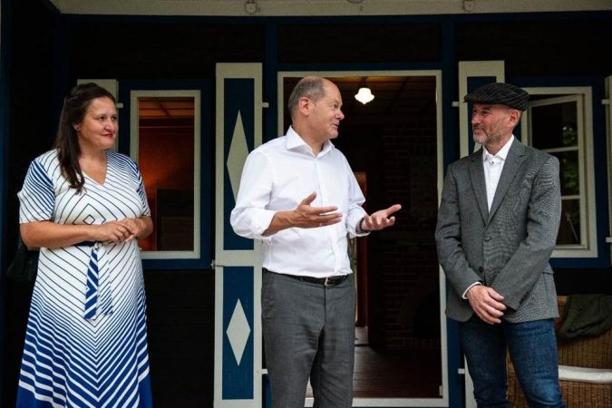 Das Alexander Haus in Groß Glienicke steht für die Geschichte eines Ortes, aber symbolisch auch für die Geschichte Deutschlands. Was früher als Sommerhaus der Familie Alexander der „Seelenort“ (Elsie Alexander) für eine jüdische Familie war, die 1936 aus Deutschland fliehen musste, wurde nach dem Bau der Mauer ein symbolträchtiger Ort für die Trennung Deutschlands. Gemeinsam mit der Community vor Ort sowie regionalen, nationalen und europäischen Partner*innen wird das Alexander Haus zu einem einmaligen Erinnerungs-, Lern- und Diskursort des interreligiös-weltanschaulichen Dialogs entwickelt. Olaf Scholz zeigte sich beeindruckt von den Plänen für ein vom internationalen Star-Architekten David Chipperfield entworfenen Seminarhaus, das als Zentrum für einen europäischen interreligiös-weltanschaulichen Dialog dienen soll.