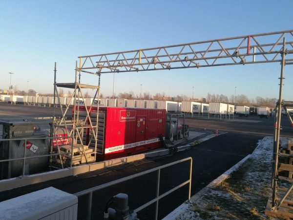 Ein weiterer Punkt, der für Bredenoord sprach, war die Nähe des Verteilzentrums zum Bredenoord Standort Schopsdorf. Ein Bredenoord Mitarbeiter besichtigte das Logistikzentrum vor Ort und konnte so gemeinsam mit dem Gebäudetechnik-Team eine passgenaue Lösung entwickeln. Eine vorhandene Trafostation ermöglichte die beinahe exakte Berechnung der benötigten Leistung für den Fall einer temporären Stromabschaltung, auf dessen Basis Bredenoord die Anzahl an Aggregaten, Kraftstoff und Tanks berechnen konnte. Um ganz sicherzugehen, wurde eine etwas höhere Leistung veranschlagt als die vorherige Messung ergab. Bei der Besichtigung wurde auch der optimale Standort für die Bredenoord Geräte ausgewählt, sodass direkt die Zuleitungen und Kabel mit in das Angebot eingezogen werden konnten.