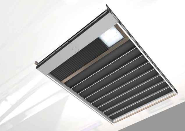 Auch können besondere Lösungen mit einer automatischen Kopplung- und Entkopplung der Dachabdeckung beim Verfahren der Portalmaschine gewählt werden. Dadurch ist es möglich, die komplette Abdeckung als Block mitzunehmen, um so eine Öffnung zum Be- und Entladen über das Dach zu schaffen. Der Verschlussmechanismus der Dachabdeckung wird dabei elektromechanisch entkoppelt und wieder verschlossen.