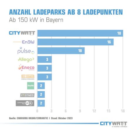 CITYWATT setzt Maßstäbe: Größter CPO in Bayern mit 18 Ladeparks