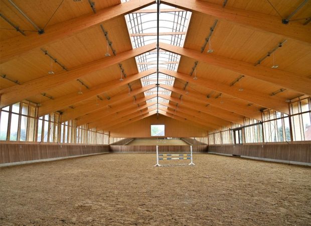 Baurechtlich gelten Reithallen und Stallgebäude als Zweckbauten – genau wie Lagerschuppen und Montagehallen. Angesichts der besonderen Erfordernisse, die die artgerechte Einstallung und Haltung von Pferden mit sich bringt, macht sich der Deutsche Holzfertigbau-Verband (DHV) für eine differenzierte Betrachtung der baulichen Standards stark.