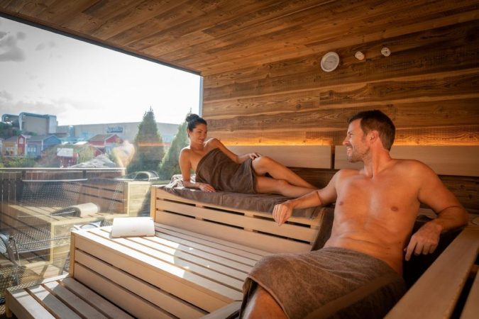 Auf insgesamt 1.000 m² erstreckt sich über dem Restaurant „Lumålunda“ eine nordische Wohlfühloase mit traumhaftem Blick über die Wasserwelt. Drei Saunen mit herrlichen Aufgüssen, ein Dampfbad, Außenterrassen und ein abwechslungsreiches gastronomisches Angebot lassen keine Wünsche offen. Ein etwas anderes Sauna-Erlebnis bietet das „KOTA Sauna Chalet“: Hier können die Gäste inmitten von rustikalen Tischen und Sitzgelegenheiten sowie einem Saunaofen zünftig saunieren und dabei ein leckeres Weißbier genießen. Im Ruhebereich wartet die „Hygge Sauna-Bar“ exklusiv auf die Gäste von „Hyggedal“.