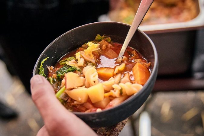 Rund ein Drittel aller erzeugten Lebensmittel erreicht nicht die Teller – vor dem Hintergrund ökologischer und sozialer Krisen ist das aus Sicht von Slow Food ein inakzeptables Ergebnis. Deswegen macht sich die Bewegung seit mehreren Jahrzehnten für die Wertschätzung von Lebensmitteln und deren Erzeuger*innen stark. Engagierte Verbraucher*innen nutzen dafür auch den Vorabend des diesjährigen Wir haben es satt!-Protests. Gewappnet mit Gemüseschäler und Kochlöffel, bereiten sie aus optisch nicht marktfähigem, aber geschmacklich einwandfreiem Gemüse wie zweibeinigen Karotten und knubbeligen Kartoffeln Suppen zu, die am Abend selbst und am Tag der Demonstration am Folgetag kostenlos verteilt werden. Dabei werden sie von den Profis großer Kochtöpfe begleitet: Das Kochkollektiv Fläming Kitchen hat schon viele Schnippeldiskos von Slow Food zum ‚kochen‘ gebracht. Höfe rund um Berlin spenden dafür über 2.000 Kilo Gemüse.
