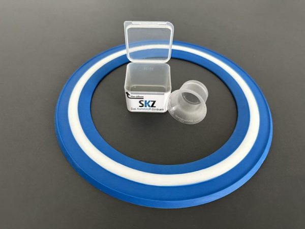 Besucher können sich aber noch über ein weiteres Give-Away am SKZ-Messestand freuen: eine aus Silikon hergestellten Uhrmacherlupe. Das Produkt entstand ebenfalls in einem Industrieprojekt am SKZ mit dem Ziel, zwei komplexe Silikon-Formteile, eine Uhrmacherlupe (Gewicht 6 g) und eine Kaffeetassenabdeckung (Gewicht 28 g), in nur einem Werkzeug zu realisieren. Das Projektkonsortium arbeitete auf einer LSR-Spritzgießmaschine von KraussMaffei mit einer Dosieranlage von NEXUS in der SKZ-Modellfabrik. Projektpartner waren Meusburger Georg GmbH & Co KG, Bestenlehrer GmbH, GÜNTHER Heisskanaltechnik GmbH und die toolcraft AG. Das Werkzeug – ein Beispiel für erfolgreiche Kooperation in der Kunststoffbranche – ist aktuell am Kunststoff-Zentrum SKZ in Anwendung. „Die Realisierung des Silikonwerkzeugs für Lupe und Kaffeedeckel ist eine großartige Leistung der Projektpartner. Es mag zwar einfach aussehen, doch steckt in Wirklichkeit so viel innovative Leistung dahinter, die zwei Artikel in nur einem Schuss herzustellen. Dass wir die Lupe an unsere Gäste weitergeben dürfen, freut mich sehr“, so Ruff.