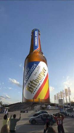 Ein entscheidender Faktor für die Bekanntheit einer Fake-Kampagne ist die verstärkte Reichweite durch soziale Medien. Sie potenzieren die Wirkung von Fake-Aussenwerbung, indem sie User:innen ermöglichen, zu interagieren – Kampagnen weiterzutragen und online darüber zu diskutieren, um sie im besten Fall viral gehen zu lassen. So wie bei Bitburger. Flankierend zur FOOH-Maßnahme, bei der die überdimensionale Bierflasche aus dem Olympiastadion schießt, griff eine weitreichende Social-Media-Kampagne die Euphorie der WM auf. Das Ergebnis: 10,6 Millionen Views und das in nur wenigen Tagen.