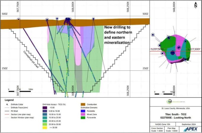 Das Unternehmen plant eine Erweiterung der MRE mit einer vermuteten Ressource in Titac South durch Bohrungen in ca. 2.000 Meter Bohrkern. Durch ein Kernbohrprogramm über ca. 2.500 Meter einschließlich Validierung der historischen Bohrergebnisse wird das zusätzliche Potenzial in Titac North für eine Ressourcenerweiterung verfolgt. Nach den erfolgreichen Bohrungen wird das Unternehmen Material aus den Bohrungen verwenden, um fortgeschrittene metallurgische Arbeiten durchzuführen und den Gewinnungsgrad für Titan sowie das Potenzial für die Gewinnung von Eisen, Kupfer und Vanadium zu optimieren. Aufgrund der Bohrungen in Titac South und Titac North hat das Unternehmen die Absicht, eine aktualisierte MRE, gefolgt von einer vorläufigen Wirtschaftlichkeitsuntersuchung (VWU), offensiv weiterzuverfolgen.