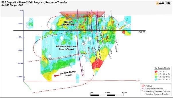 „Wir sind sehr ermutigt durch die Fortschritte, die wir in Phase II unserer Exploration in der Lagerstätte B26 sehen“, sagte Jonathon Deluce, CEO und Präsident von Abitibi Metals. “Die Hinzufügung wichtiger Mineralisierungsabschnitte, einschließlich des bedeutenden 60-Meter-Abschnitts in der Tiefe in Bohrloch 1274-24-342, verstärkt das Wachstumspotenzial des westlichen Einfalls der Lagerstätte. Da bisher 10 Bohrlöcher abgeschlossen wurden, konzentrieren wir uns weiterhin auf die Weiterentwicklung aller Zielgebiete, einschließlich der weiteren Abgrenzung der Tagebauressource und der Erprobung der Ziele Mid-Level und Western Plunge. Dieses Phase-II-Programm ist von entscheidender Bedeutung, da wir auf die Erweiterung der Ressource und die Validierung unserer Entwicklungsstrategie hinarbeiten. Mit einem vollständig finanzierten Programm von insgesamt 50.000 Metern und bedeutenden Zielen, die noch vor uns liegen, glauben wir, dass wir weiterhin das potenzielle Ausmaß der Lagerstätte B26 aufzeigen werden.“