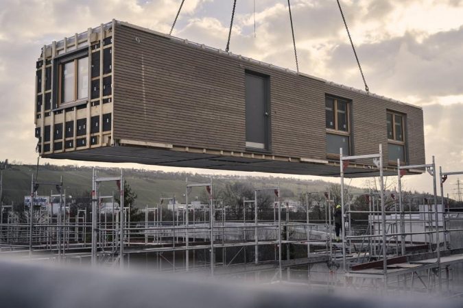Dank der Fertigung in KLEUSBERGs Werk kann der Materialeinsatz optimiert und Abfall reduziert werden. Nachhaltige Rohstoffe werden bevorzugt, sodass Materialien nach ihrem Lebenszyklus recycelbar bleiben. Diese zirkuläre Bauweise erlaubt es, schnell auf veränderte Anforderungen zu reagieren. Durch die Wiederverwendbarkeit der Module sowie die Reduzierung von Bauabfällen und Materialkosten bietet die Zirkularität im Modulbau eine zukunftsweisende, ressourcenschonende Bauweise.