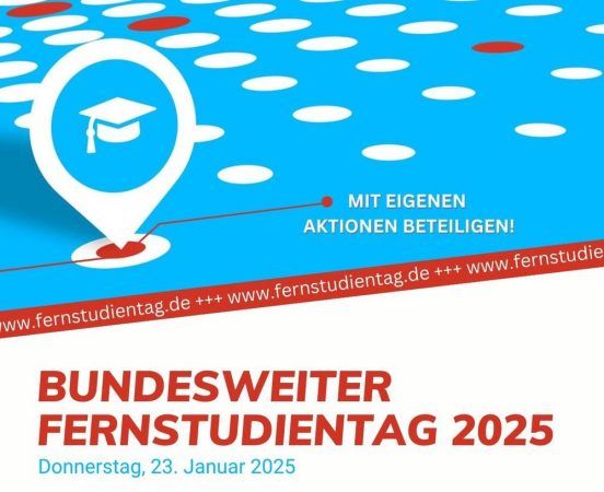 Der Bundesweite Fernstudientag ist ein einzigartiger Aktionstag, der seit 2006 jährlich Menschen und Institutionen zusammenbringt. Ziel ist es, die Flexibilität und Vielfalt des DistancE-Learning erlebbar zu machen und Bildung neu zu denken. Die Plattform www.fernstudientag.de bündelt sämtliche Aktionen, bietet Orientierung und ermöglicht den direkten Zugang zu Veranstaltungen.