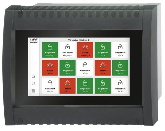 Das neue integrierte Touch-Display ist in Kombination mit dem effeff TSB-Controller 970-TSBC-30 einsetzbar. Dabei können für die Ansteuerung von mehr als 24 Türen auch mehrere Bedientableaus an einem TS-Bus angeschlossen werden. Die einzelnen Türen werden in dem Fall individuell jeweils einem oder mehreren Bedientableaus zugeordnet. Dank der TS-Bus-Schnittstelle ist darüber hinaus die Vernetzung von weiteren effeff Fluchttürtechnik-Produkten möglich.