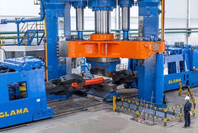 - Die neue Schmiedepresse und die bestehende Radialschmiedemaschine von SMS bilden zusammen eine voll integrierte Schmiedeanlage