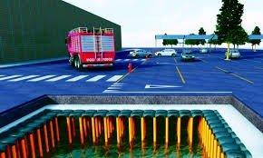 Dazu wird eine ca 4 m tiefe Betonwanne errichtet in der Rohre aus recyceltem PVC aufgeständert und mit Beton befüllt werden. Das sind die tragenden Säulen welchen den Verkehr darüber tragen. Auf die Rohre werden Atlantis Platten verlegt, bewehrt und ebenfalls mit Beton überzogen. Darüber kommt dann das was vorher da war: Beton, Steine, Asphalt, Grünfläche oder ein Sportbelag. In diese Behälter die problemlos an die 250 000 Hektoliter Regenwasser aufnehmen können, werden dann die Oberflächenwässer eingeleitet und zumindest solange gebunkert bis die Gefahr vorbei ist. Bei cleverer Bewirtschaftung kann dieses Wasser auch während Trockenperioden für die Beregnung der Grünflächen oder als Löschwasser-Reservoir genutzt werden.