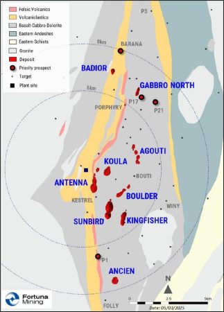 Paul Weedon, Senior Vice President of Exploration bei Fortuna, erklärte: „Das Infill-Bohrprogramm bei Kingfisher wurde erfolgreich abgeschlossen. Mehrere bemerkenswerte Abschnitte bestätigen die Ausdehnung der Mineralisierung, darunter 4,5 g/t Au über eine geschätzte Mächtigkeit von 37,4 Meter in Bohrloch SGRD2363 in einer Tiefe von 79 Meter. Die Exploration konzentriert sich nun auf die weitere Ausdehnung des Streichs und der Tiefe bei Kingfisher, wo 300 Meter unter der Oberfläche und weitere 250 Meter entlang des Streichs erfolgreich eine Mineralisierung durchschnitten wurde.“