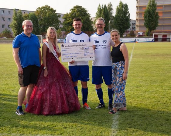 Seit zwölf Jahren zieht das beliebte Event regelmäßig zwischen 200 und 500 Zuschauende und Mitwirkende an. Acht offene Zelte präsentierten die Erlebniswelt des Apfel-Latein, begleitet vom AOK-Smoothie-Bike, einem abwechslungsreichen Familienprogramm sowie von weiteren Auftritten wie der des Tanzstudios Leuna-Merseburg. Sportlich endete die Begegnung nach 2 x 30 Minuten mit einem 4:4-Unentschieden. Im anschließenden Elfmeterschießen setzte sich das Team Presse mit 4:2 durch. Mit einer Gesamtsumme von 10.019 Euro, darunter 386 Euro Tombolaerlöse, wurde ein neuer Rekord aufgestellt. Allein das Klinikzentrum steuerte 300 Euro zur Gesamtsumme bei und 10 Eintrittsgutscheine in die Toskana Therme Bad Sulza für die Tombola