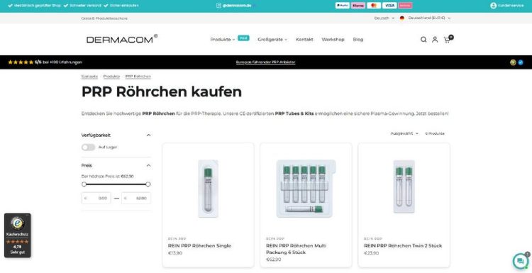 Der Online-Shop Dermacom Shop gibt heute den Beginn einer exklusiven Zusammenarbeit mit REIN PRP bekannt. Im Rahmen dieser strategischen Partnerschaft übernimmt der Dermacom Shop den Vertrieb der hochwertigen PRP Röhrchen (Platelet-Rich Plasma) von REIN PRP. Mit dieser Kooperation baut der Online-Shop sein Produktportfolio im Bereich der regenerativen und ästhetischen Medizin weiter aus.