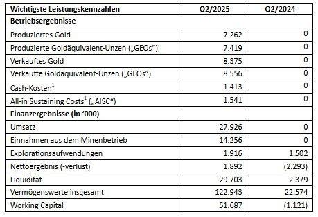 – Produktion von 7.396 Goldäquivalent-Unzen (GEOs) im Q2/2025