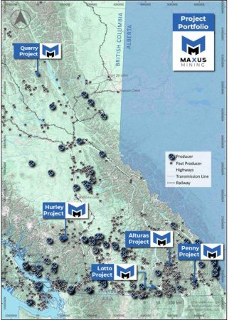 Maxus Mining Inc. („Maxus“ oder das „Unternehmen“) (CSE: MAXM | FWB: R7V) freut sich, den Start seiner Partnerschaft mit der Firma Palliser Exploration Ltd. („Palliser“) hinsichtlich der Exploration 2025 auf seinen vier kritischen Mineralprojekten bekannt zu geben, nämlich dem Projekt Quarry, dem Projekt Hurley, dem Projekt Lotto und dem Projekt Alturas (die „Konzessionsgebiete“ oder die „Projekte“) in der kanadischen Provinz British Columbia (siehe Abbildung 1).