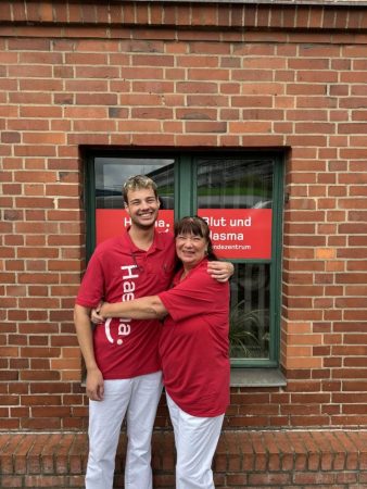Mama Jackie und Sohn Luca arbeiten im selben Spendenzentrum: Luca hat seine Ausbildung bei Haema in Berlin-Tegel begonnen und schnell gemerkt, dass es bei der Arbeit mit den Spenderinnen und Spendern um mehr geht als Dienst nach Vorschrift. Als Jackie beruflich eine neue Perspektive sucht, holt er sie kurzerhand ins Team. Bei Haema hat sie nicht nur ein tolles Team gefunden, sondern auch einen Herzblutjob: „Ich fühle mich hier sehr gut aufgenommen. Dabei bin ich mit fast 60 Jahren oft die Älteste im Saal und übernehme gerne die Rolle als Spendenmutti. Es läuft einfach altersübergreifend rund bei Haema.“ In Gotha liegen dem Mutter-Tochter-Duo Maritta und Sabrina Ehrlichkeit, Wertschätzung und ein respektvoller Umgang zwischen Team, Spendenden und Erkrankten besonders am Herzen. Dabei überzeugt sich Sabrina als Zentrumsmanagerin gerne auch jeden Tag bei der Arbeit, dass es ihrer Mutter gut geht. Und Maritta erfüllt es mit Stolz, ihre Tochter als verantwortungsvolle Chefin zu erleben. Es berührt beide, Patientinnen und Patienten zu treffen und bewegt sie, ihre gemeinsame Zeit beruflich und privat noch bewusster zu gestalten.