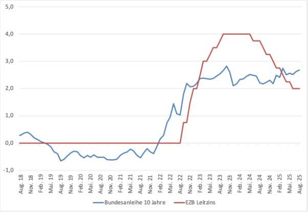 Die EZB befindet sich zwar derzeit in der Nähe ihres Inflationsziels von 2,0 Prozent, doch nirgends ist festgelegt, welches Zinsniveau dafür notwendig ist, um dieses Ziel zu halten. Die Wirtschaft schwächelt bereits seit Längerem, ohne dass sich die Inflation deutlich nach unten bewegt – was die These struktureller Herausforderungen auf der Angebotsseite, insbesondere im Dienstleistungssektor, stützt. Da sich diese Probleme nicht kurzfristig lösen lassen, ist eine Rückkehr zur Niedrigzinspolitik in naher Zukunft äußerst unwahrscheinlich.