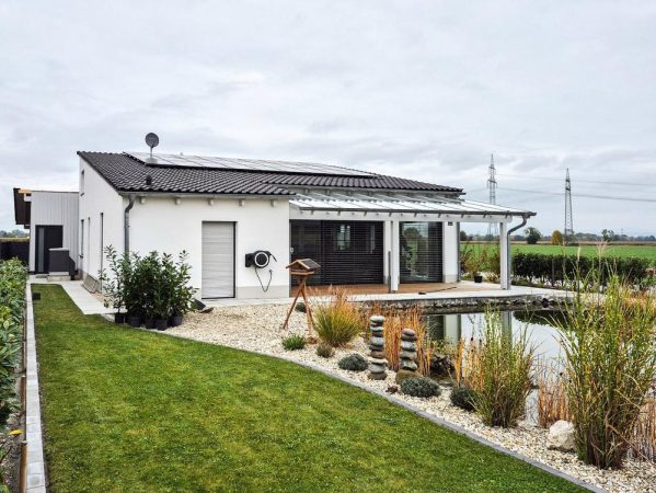 Der Bungalow in Tabertshausen mit einer Grundfläche von rund 100 m² bietet neben dem Wohnbereich für zwei Personen unter dem Dach auch Platz für ein kleines Büro. Um sich für die Zukunft aufzustellen, wünschte sich der Bauherr eine umweltfreundliche und von fossilen Brennstoffen unabhängige Wärmeversorgung. Dafür kamen Wärmepumpe und ‑speicher sowie Flächenheizung/-kühlung von KERMI zum Einsatz. Zusätzlich wurde in dem Neubau (KfW-Effizienzhaus 40) eine zentrale Wohnraumlüftung installiert – für ein optimales Raumklima aus einer Hand.