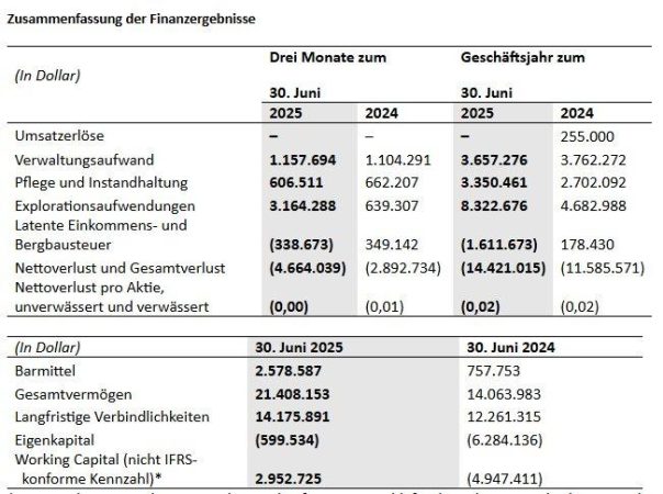 – Abcourt hat sein Working Capital für das am 30. Juni 2025 endende Geschäftsjahr deutlich verbessert und weist jetzt ein Working Capital von 2.952.725 $ aus, verglichen mit einem negativen Betriebskapital von 4.947.411 $ zum 30. Juni 2024.