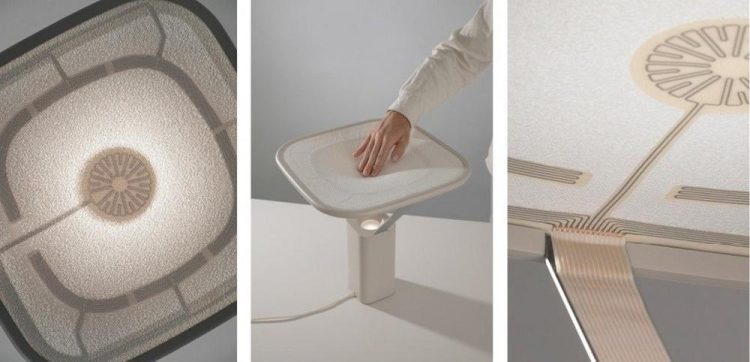 Ein herausragendes Beispiel für die Anwendung dieser Technologie ist eine interaktive Leuchte mit einem textilen Lampenschirm. Keine Knöpfe oder Regler stören die klaren Linien der 3D-gedruckten Lampe. Nur subtile Veränderungen des Strickmusters auf dem flachen Lampenschirm laden zu einer Berührung ein. Intuitiv kann so die Lampe ein- und ausgeschaltet werden. Im ihrem Fuß sitzen LEDs, deren Licht gedimmt und in der Farbe angepasst werden.
