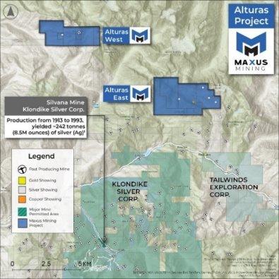 Maxus Mining Inc. („Maxus“ oder das „Unternehmen“) (CSE: MAXM | FWB: R7V) freut sich, eine Zusammenfassung der wichtigsten Explorationsergebnisse aus dem westlichen Block seines Vorzeigeprojekts, des Antimonprojekts Alturas, bereitzustellen (siehe Abbildung 1). Der Westblock von Alturas („Alturas West“ oder das „Projekt“) erstreckt sich über eine Fläche von 899 Hektar mit hervorragendem Potenzial für die kritische Mineralexploration in der Slocan Mining Division in British Columbia (siehe Abbildung 2).1 Das Projektgebiet umfasst die ehemalige Mine Alps-Alturas. Das Unternehmen hat eine umfassende Prüfung aller verfügbaren historischen Bewertungsberichte für das Projekt durchgeführt, die auf mehrere historische kritische Mineralvorkommen und das Potenzial für die Antimonexploration auf Alturas West hinweisen.