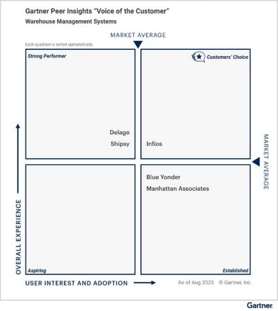 Bereits zu Jahresbeginn war Infios zum siebten Mal in Folge als Leader im Gartner® Magic Quadrant™ für Warehouse Management Systems ausgezeichnet worden. Die erneute Anerkennung durch das Voice of the Customer-Format unterstreicht die Leistungsfähigkeit und den nachhaltigen Mehrwert der intelligenten Supply-Chain-Lösungen von Infios.