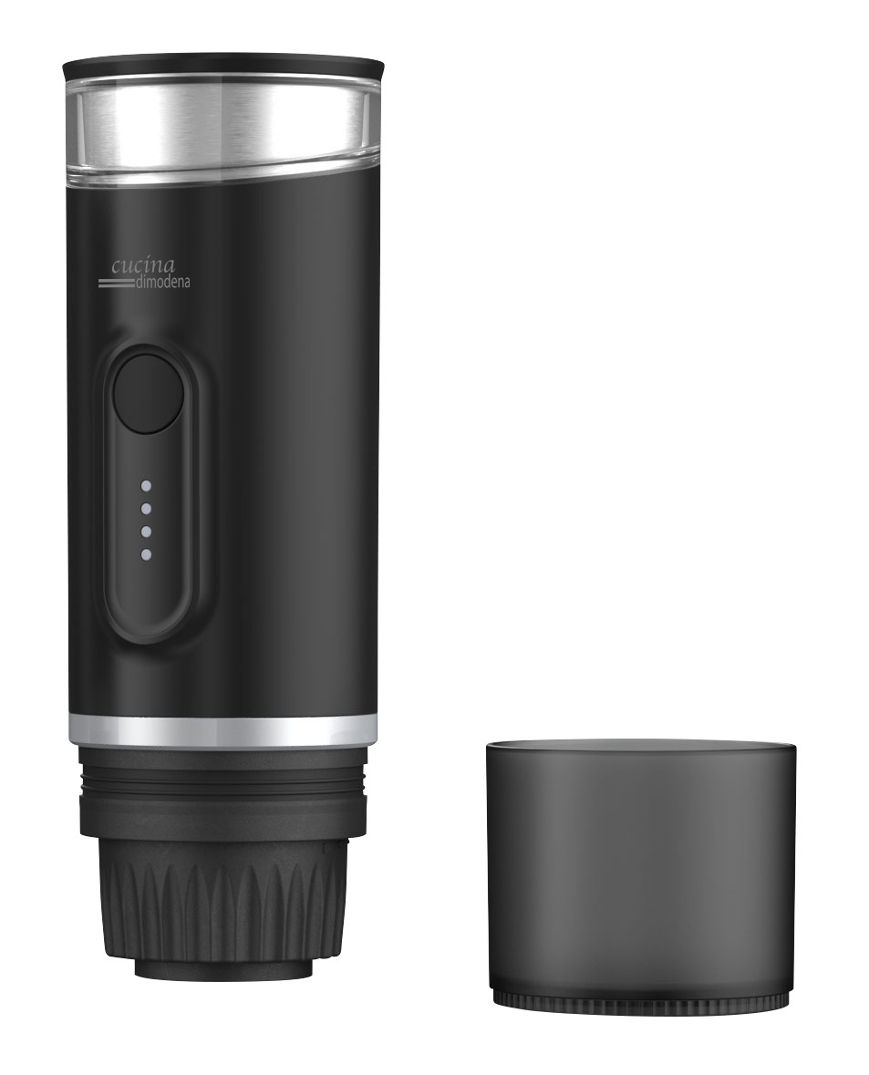 Die mobile Akku-Espressomaschine mit Wasserkocher ohne Steckdose von Cucina di Modena kann man im Auto, beim Camping oder unterwegs benutzen. Das Wasser erhitzt sich dabei selbst bis zu 92 Grad Celsius. Dank 15 bar Druck schmeckt der Espresso wie beim Barista.