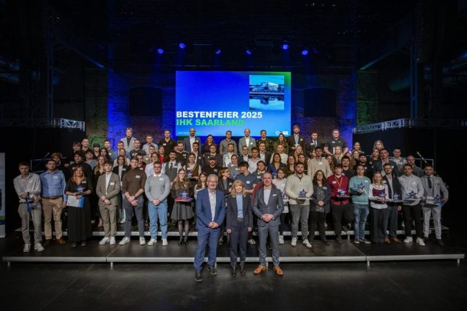 Bei ihrer diesjährigen Bestenfeier am 25. November in der Industriekathedrale Alte Schmelz in St. Ingbert hat die IHK Saarland 105 Teilnehmer der IHK-Abschlussprüfungen als Landesbeste ausgezeichnet. Ministerpräsidentin Anke Rehlinger und IHK-Präsident Dr. Hanno Dornseifer ehrten gemeinsam mit IHK-Vizepräsidentin Sonja Anton und IHK-Hauptgeschäftsführer Dr. Frank Thomé die 90 besten Absolventen einer IHK-Berufsausbildung. Für besonders gutes Abschneiden bei Weiterbildungsprüfungen wurden vor 650 Gästen 15 Teilnehmer ausgezeichnet. Mit den Absolventen wurden auch die jeweiligen Ausbildungsbetriebe geehrt und die Leistungen der beruflichen Schulen gewürdigt.