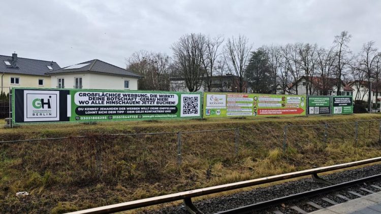 Die imposante Mega Riesen Außenwerbefläche von GHI Außenwerbung Berlin am Bahnhof Lichterfelde Süd misst 94,5 Meter Länge und 1,80 Meter Höhe und zählt zu den auffälligsten Bauzaunflächen der Region. Sie liegt exakt im Übergang zwischen Berlin und Brandenburg – ein Standort, der täglich tausende Menschen erreicht.