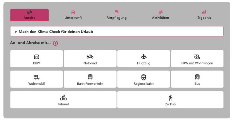 Gäste erwarten zunehmend nachvollziehbare Informationen zu den Klimaauswirkungen ihres Aufenthalts. Gleichzeitig benötigen Destinationen Werkzeuge, um Emissionsquellen entlang der Reisekette sichtbar zu machen und nachhaltige Alternativen klar zu kommunizieren. Viele vorhandene CO₂-Rechner sind jedoch nicht tourismusspezifisch und beziehen sich eher auf Alltagsemissionen, methodisch zu grob oder wenig nutzerfreundlich.