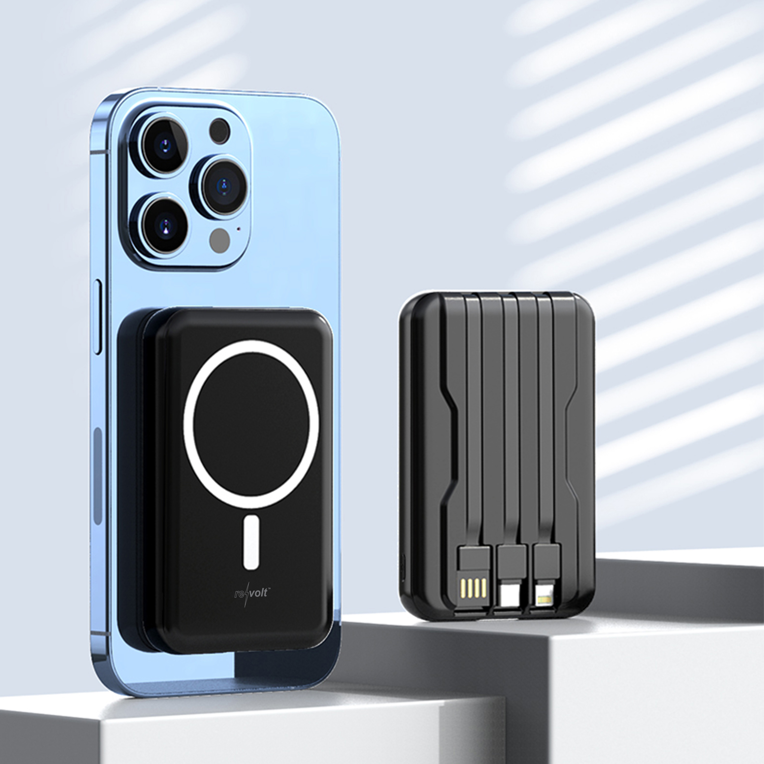 revolt 4er-Set Magnet-Powerbank PB-805,10.000 mAh, für Qi & MagSafe, PD, QC, 22,5 Watt