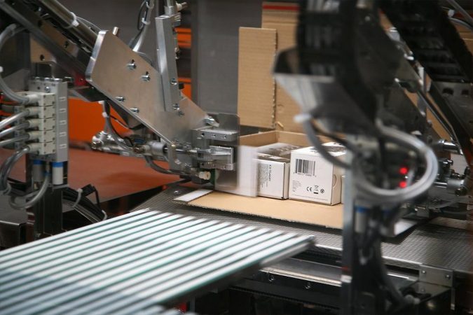 Die PackOnTime perfektioniert das automatisierte Verpacken von Waren in verschiedensten Größen. Die Verpackungen werden individuell auf den jeweiligen Inhalt zugeschnitten. Das reduziert den Materialverbrauch auf ein Minimum und entspricht so den höchsten Anforderungen an Nachhaltigkeit und Wirtschaftlichkeit. Auch Polstermittel werden eingespart und somit das Transportvolumen spürbar reduziert. Die PackOnTime2box verarbeitet bei Bedarf in wenigen Arbeitsschritten beliebige Kombinationen verschiedenartiger Stückgüter innerhalb einer Packung und konstruiert eine robuste Verpackung, die für Retouren verwendet werden kann. Da die Anlage Verpackungen erst dann produziert, wenn sie benötigt werden, wird zusätzlich Lagerplatz gespart.