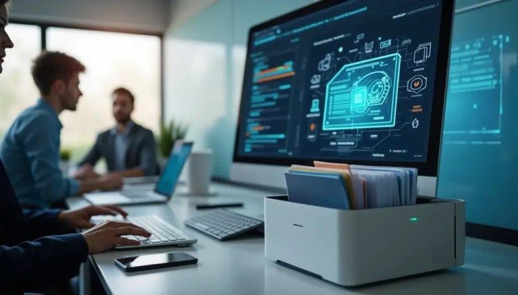 Digitale Archivierung bedeutet, dass Unternehmen ihre wichtigen Daten elektronisch speichern. Anstatt Papierdokumente in Aktenordnern aufzubewahren, werden sie digitalisiert. Das spart Platz und macht den Zugriff auf Informationen einfacher.