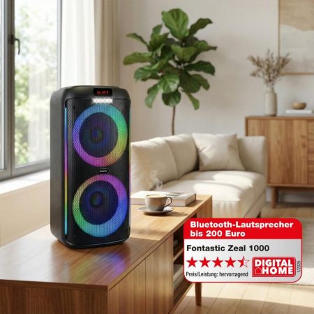 Der Fontastic ZEAL 1000 präsentiert sich im Test als leistungsstarker Partylautsprecher mit umfangreichem Zubehör, kräftigem Klang, Karaoke-Funktion und stimmungsvoller LED-Beleuchtung. In seiner Preisklasse bietet er ein überzeugendes Gesamtpaket für Musik- und Partyfans.