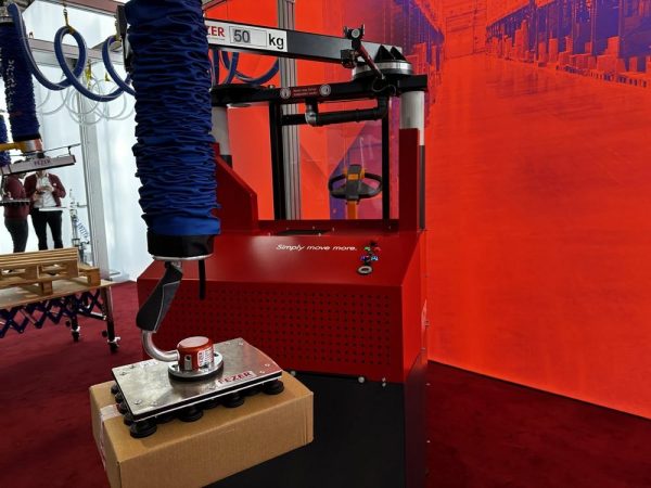 Im Mittelpunkt des FEZER-Messestands steht der VacuMobiLift, ein innovatives mobiles Hebegerät mit integriertem Knickschwenk-Gelenkkran und Vakuum-Schlauchheber, das speziell für die Anforderungen der modernen Intralogistik entwickelt wurde. Die Lösung kombiniert hohe Bewegungsfreiheit mit präziser Lastaufnahme und ergonomischem Arbeiten und eignet sich ideal für wechselnde Einsatzorte, dynamische Lagerstrukturen und unterschiedliche Lastarten.
