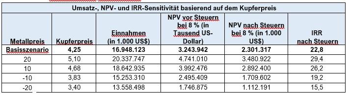 - Projektwirtschaftlichkeit nach Steuern bei 4,25 USD/lb Kupfer: