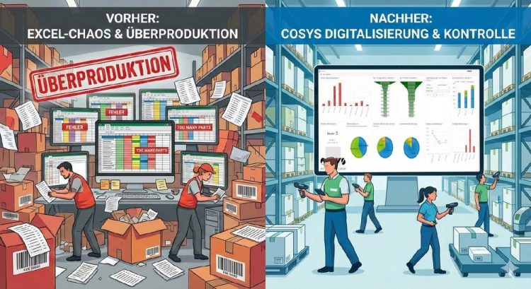 Der anonyme Großauftrag zeigt ein typisches Muster: Hohe Artikelvielfalt, große Mengen und mehrere Scan-/Exportquellen führen schnell zu Excel-Konsolidierung, fehlender Echtzeitvalidierung und teurer Überproduktion. Ein Lagerverwaltungssystem wie COSYS kann hier die operative Basis stabilisieren: Prozesse werden digital geführt, Daten werden zentral verfügbar, und Abgleiche werden methodisch statt improvisiert.
